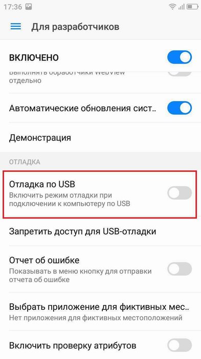 İlk olarak, bir kablo kullanmayı içeren en basit yönteme bakalım. USB hata ayıklamanın etkinleştirilmesi gerektiğini unutmayın. Bunu yapmak için geliştirici modunu etkinleştirin.